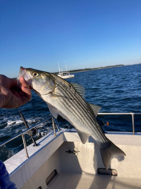 Tackle/gear/rods/ice & boat cooler and mate gratuity are included.  Please bring your own food/drink and dress for the weather. Drinking alcohol is allowed, but please drink responsibly!  All fish caught will be filleted and divided equallyLimit:  If we have 9 passengers onboard, we can take 11 fish home, and so on. We provide all fishing gear needed for the day.  The method of fishing is TROLLING, where the rods are set out with artificial lures and the boat is constantly moving at a slow speed to attract and catch RockFish. The Captain and Mate assist with the catch. Customers wind the fish in.  All fish are landed in the boat's cooler.  All catch is filleted and divided equally at the end of trip to ensure everyone receives a fair share of the catch. Leave empty coolers in your vehicles to save room while aboard the boat.